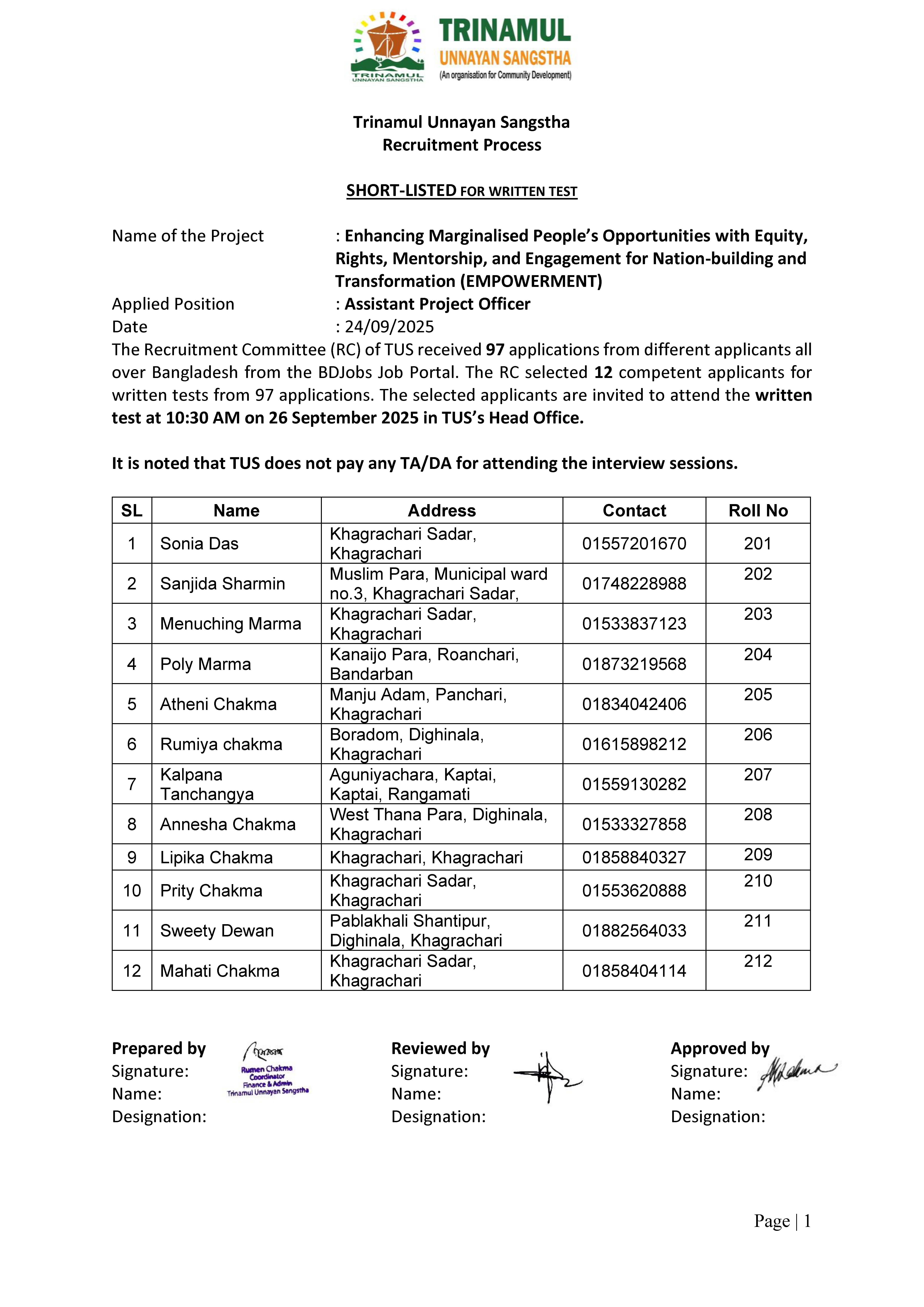 Assistant Project Officer (Female) for the EMPOWERMENT Project